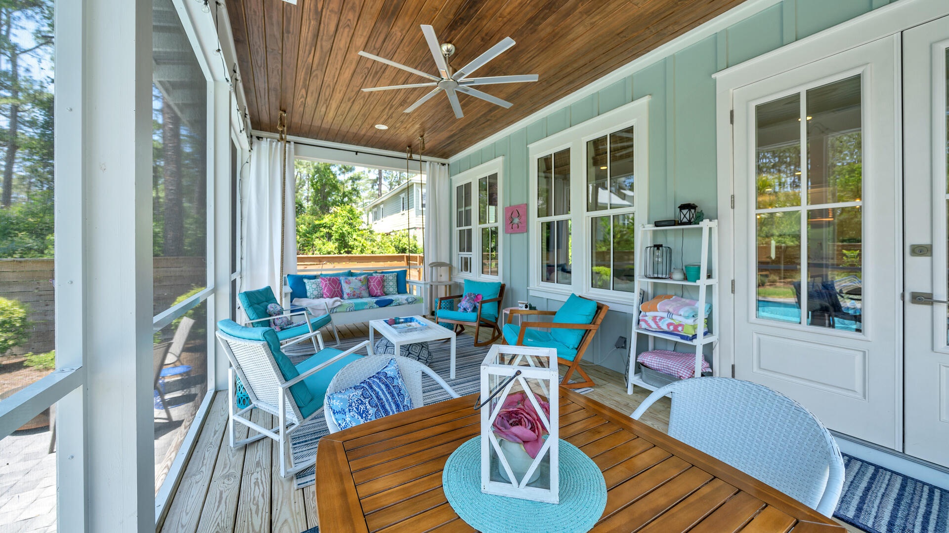 The screened porch leads out to the pool and yard!