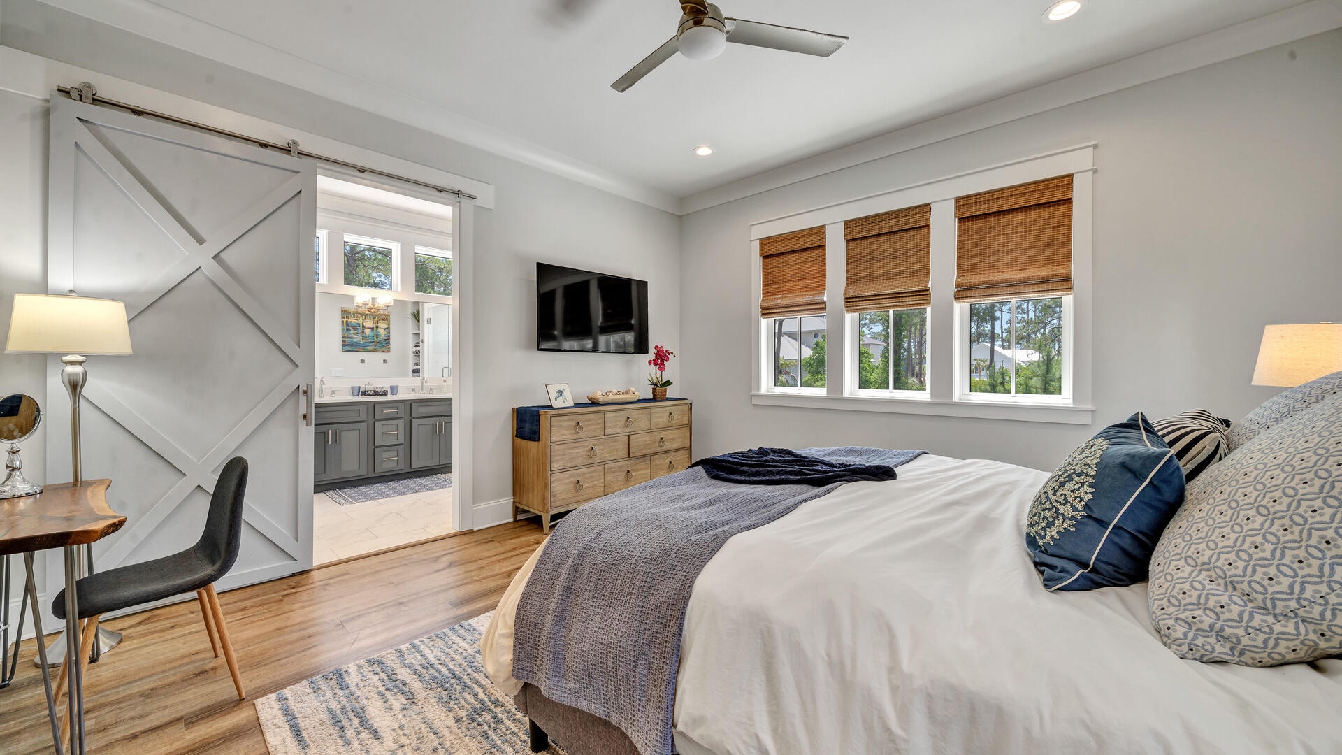 The upstairs master includes a king bed and large private bathroom!
