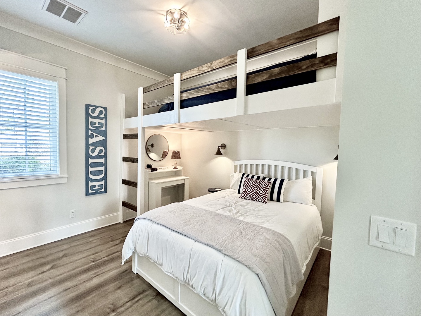 Also upstairs, you'll find a "bunk room" (great space for one family) which features lofted full-over-queen beds, and a twin trundle.
