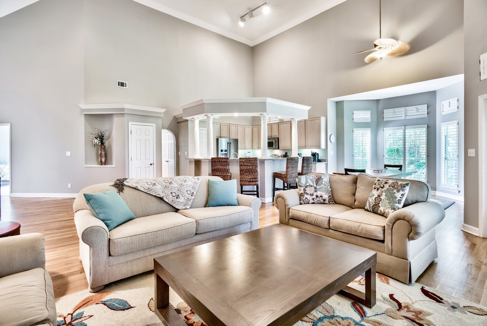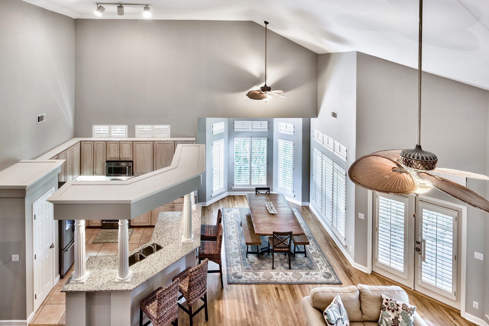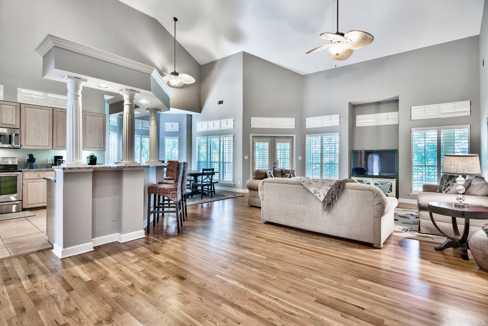 Entering the home, you'll love the massive vaulted ceilings and open-plan design. A great space for family gatherings!