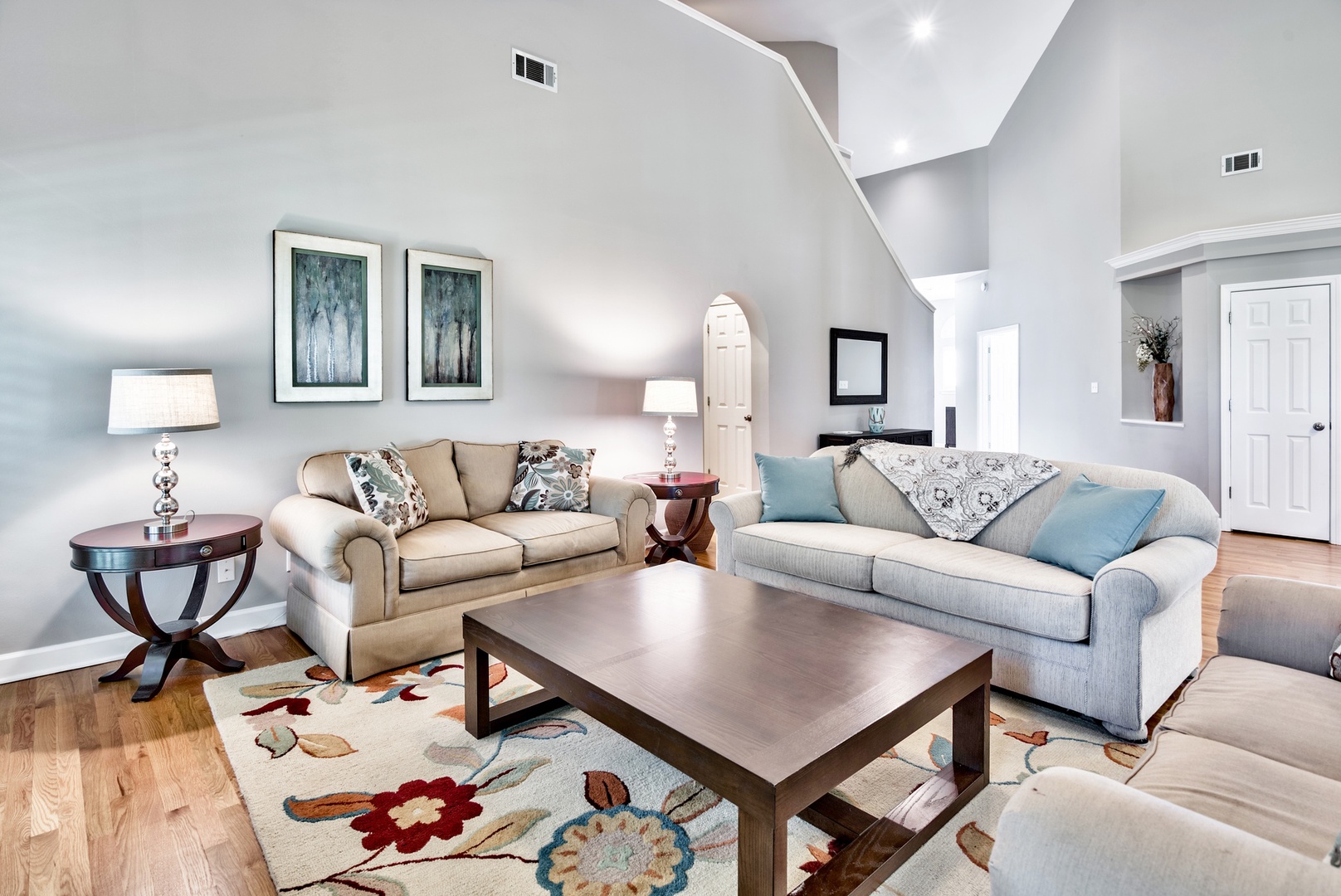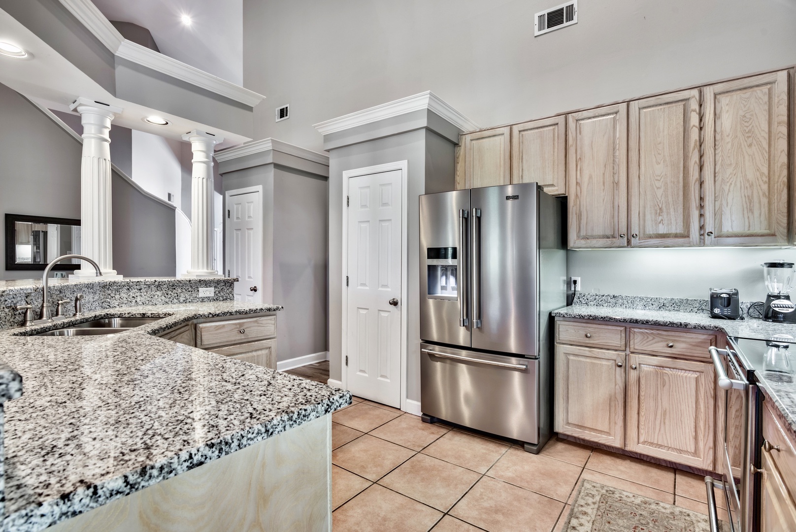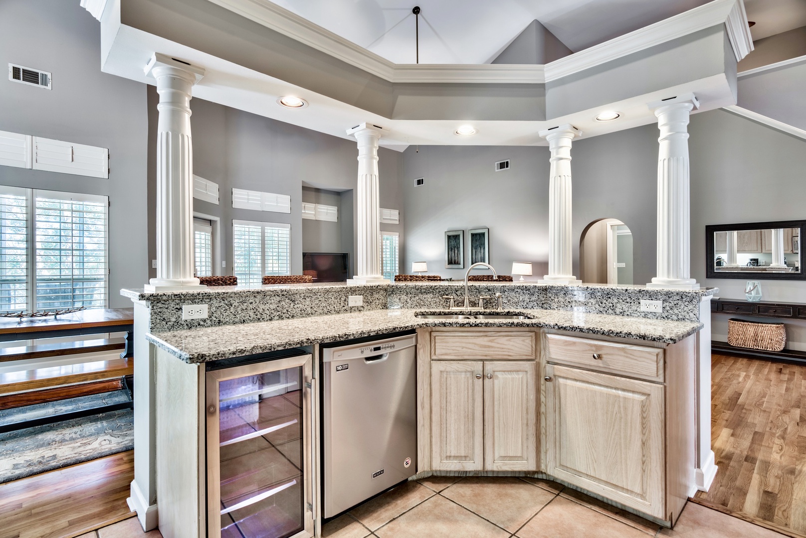 Entering the home, you'll love the massive vaulted ceilings and open-plan design. A great space for family gatherings!