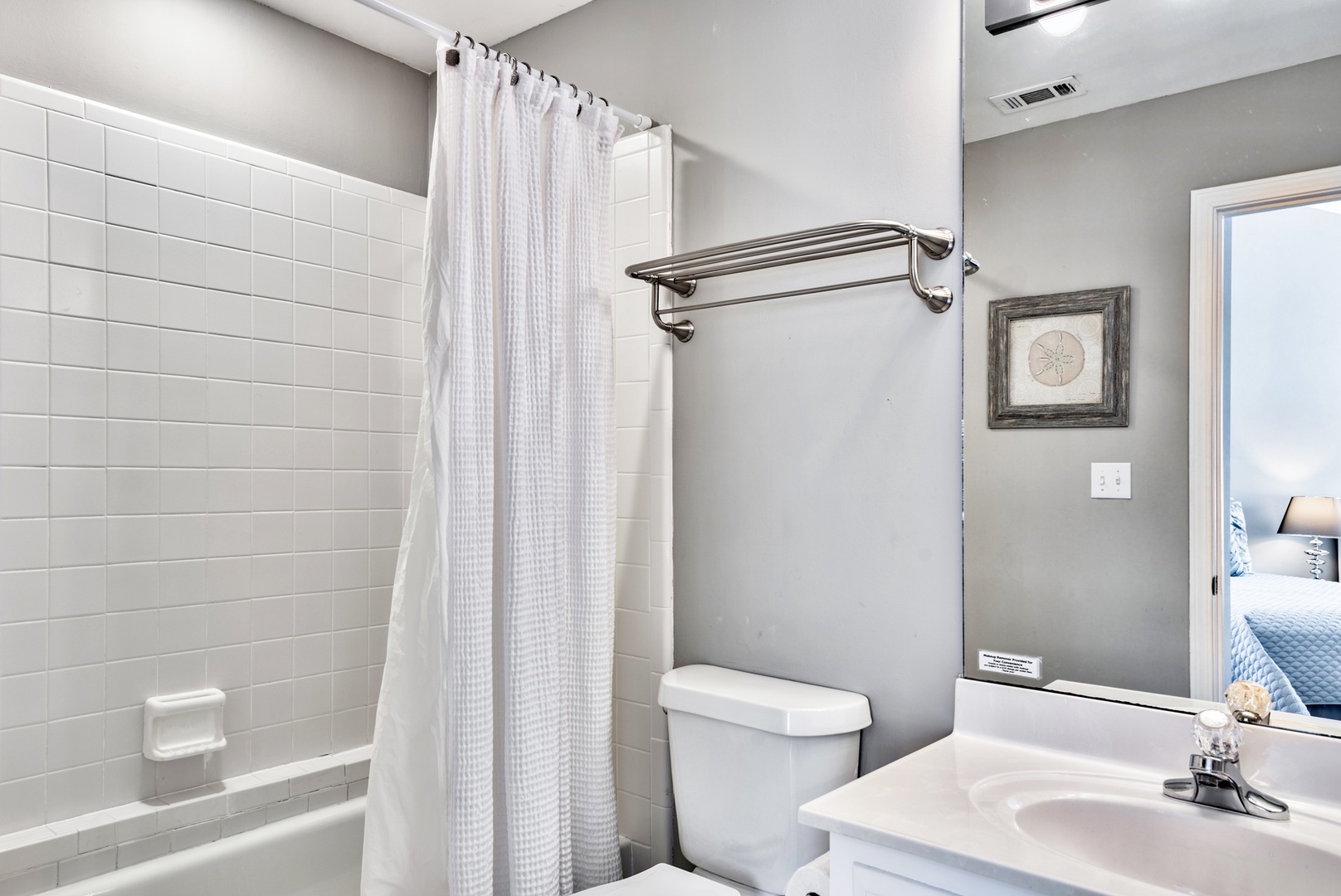 The double-queen private bathroom includes a tub/shower!