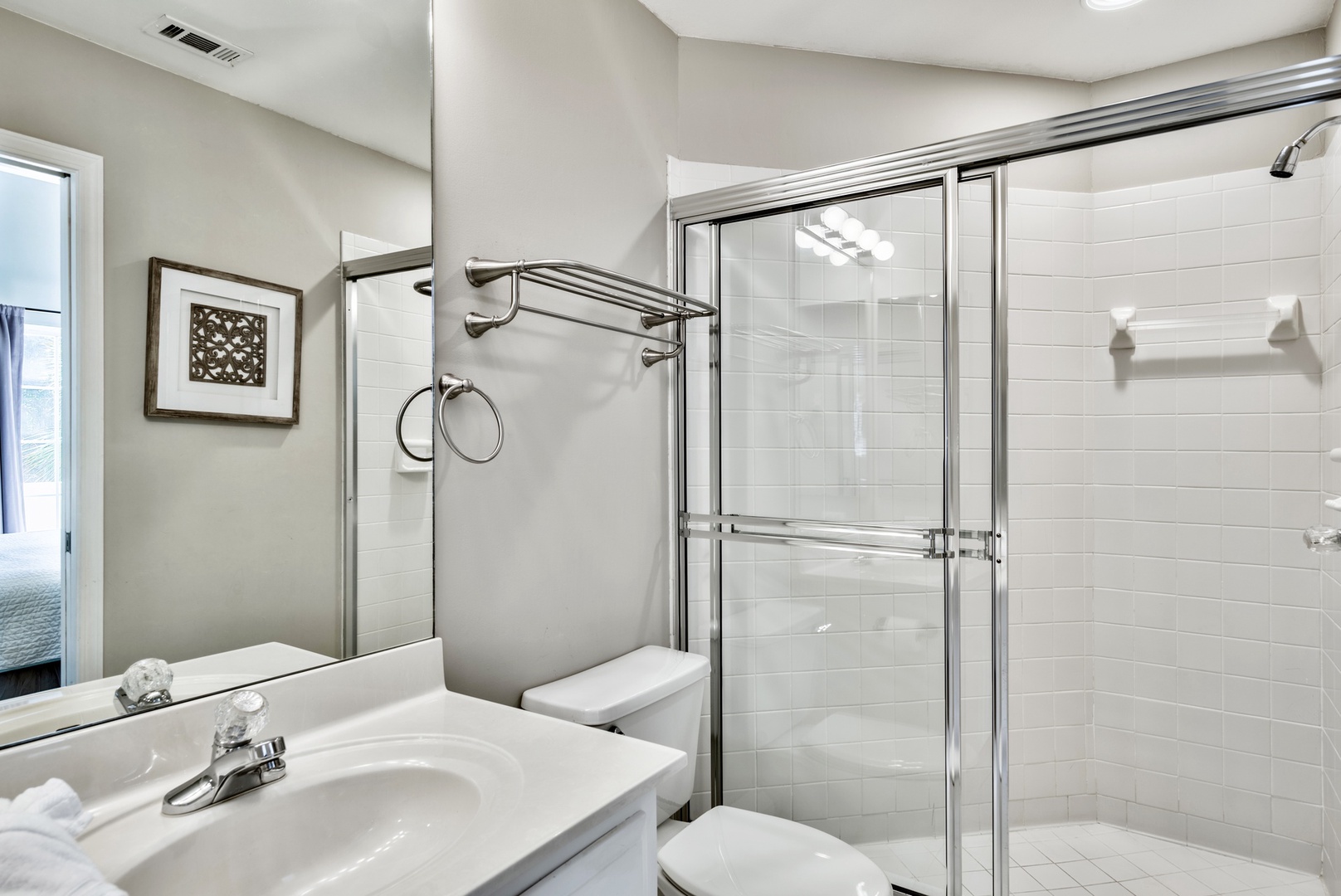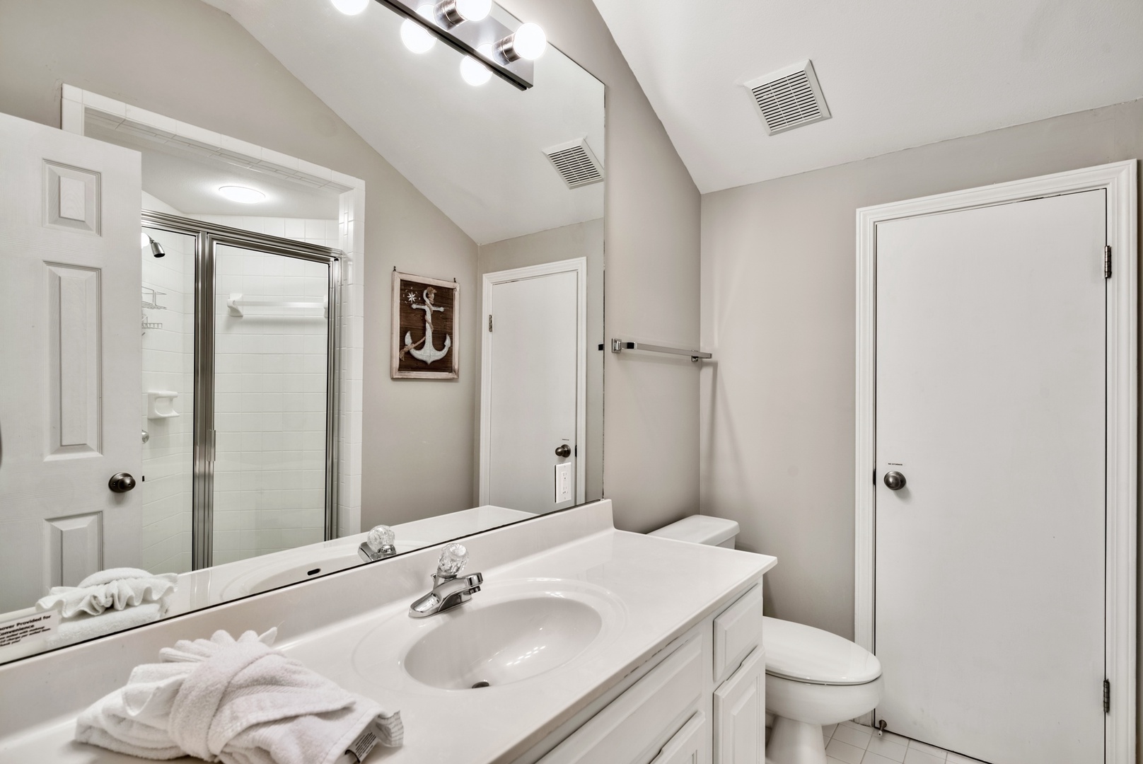 The loft bathroom includes a walk-in shower!