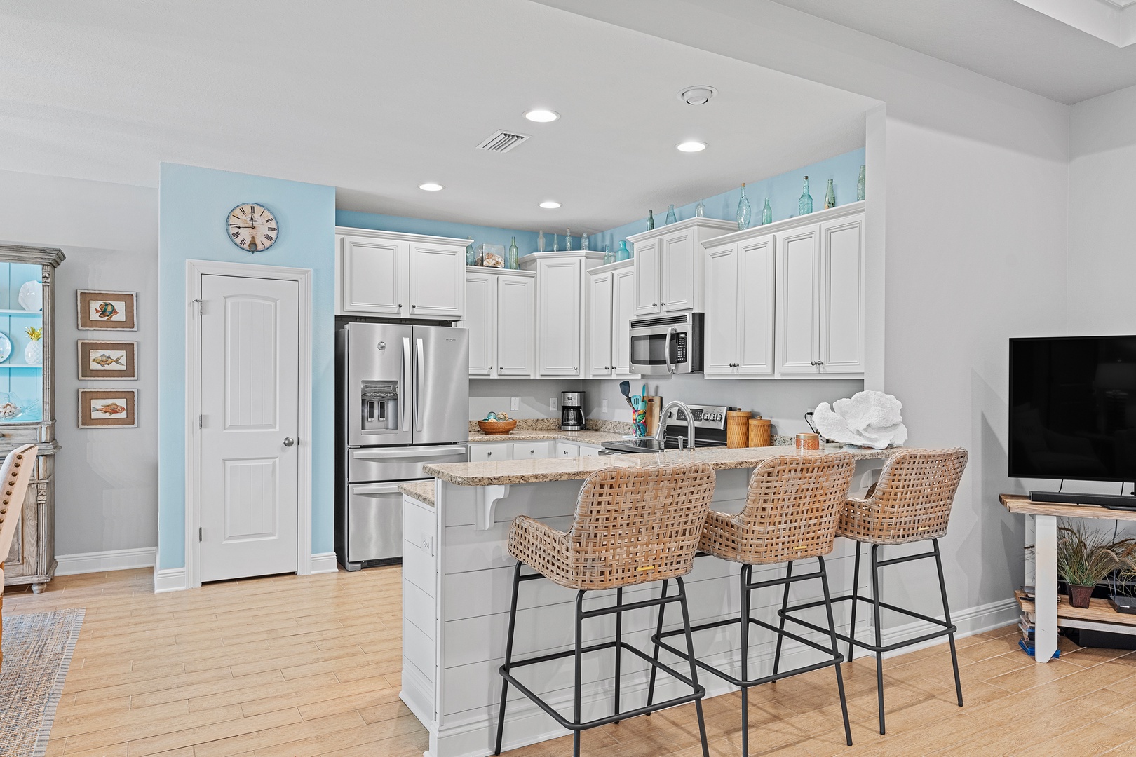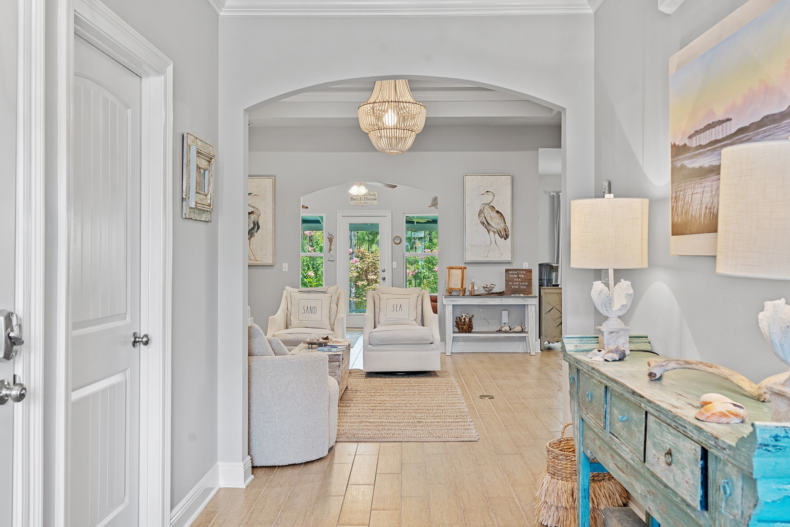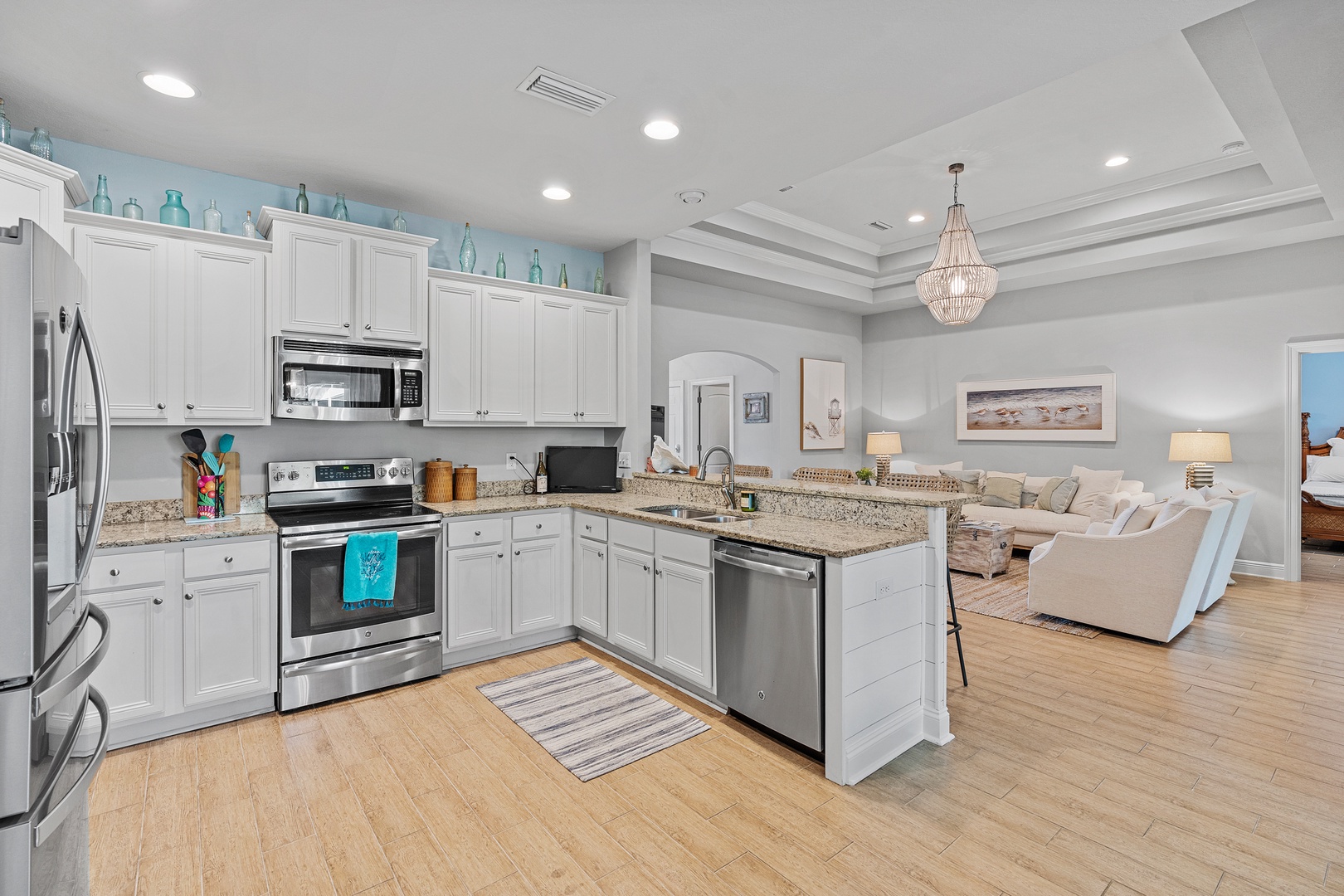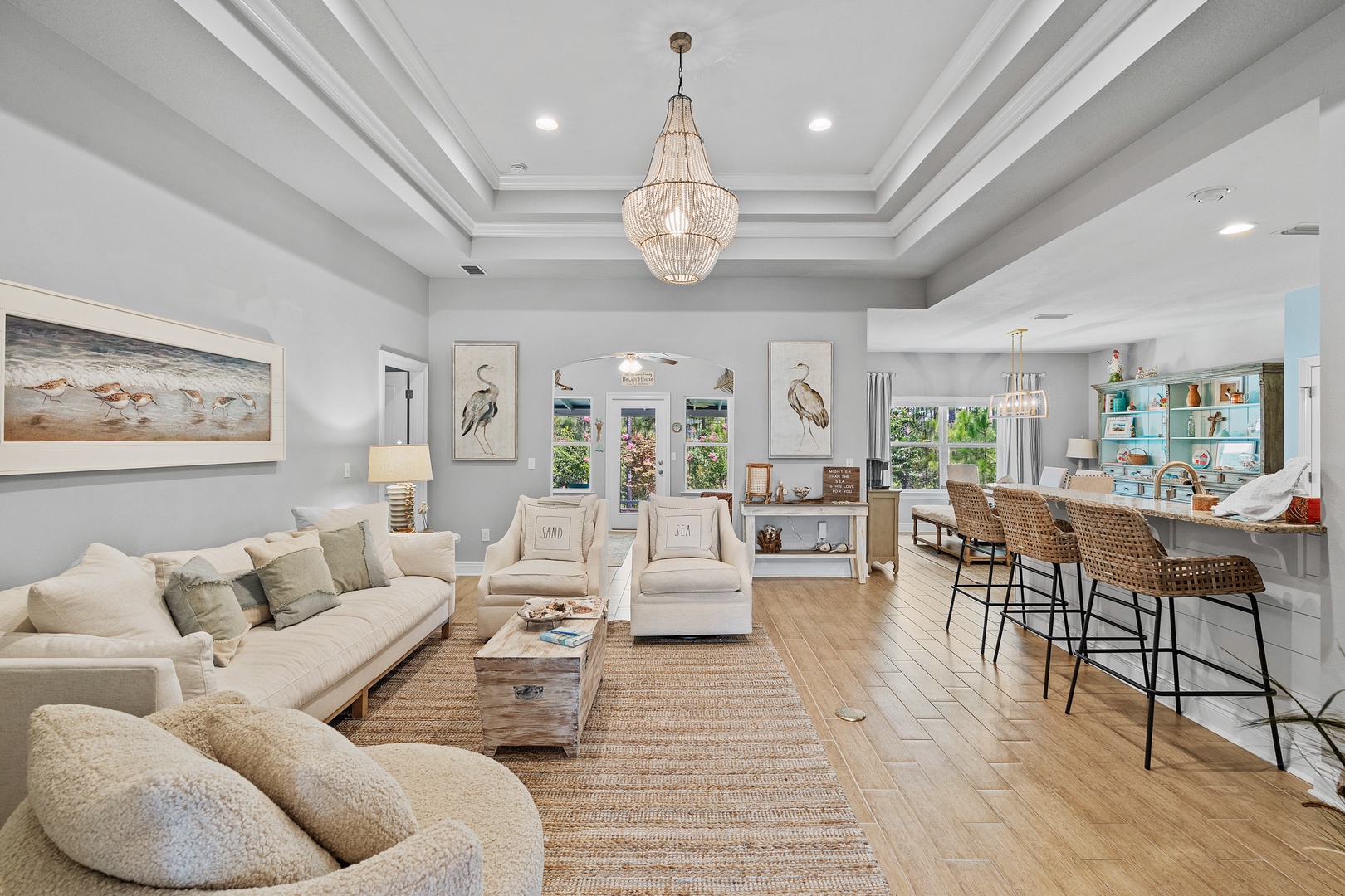 - Multiple living spaces, beautiful coastal decor