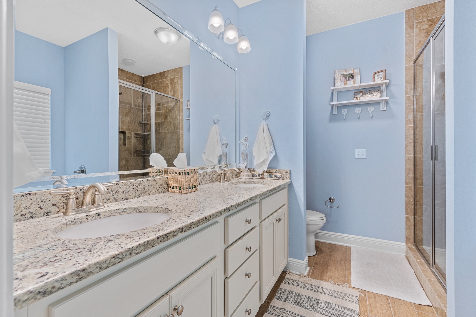 The guest bathroom includes a tub/shower combo, and is situated between the king bedrooms on the main floor.
