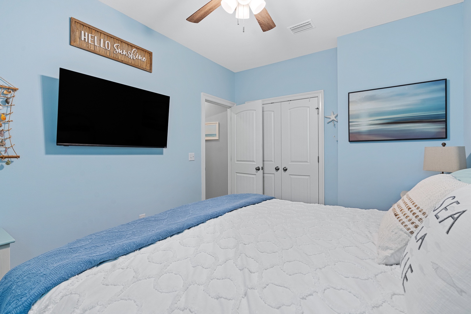 The 2nd guest bedroom features a king bed, and plenty of closet space!