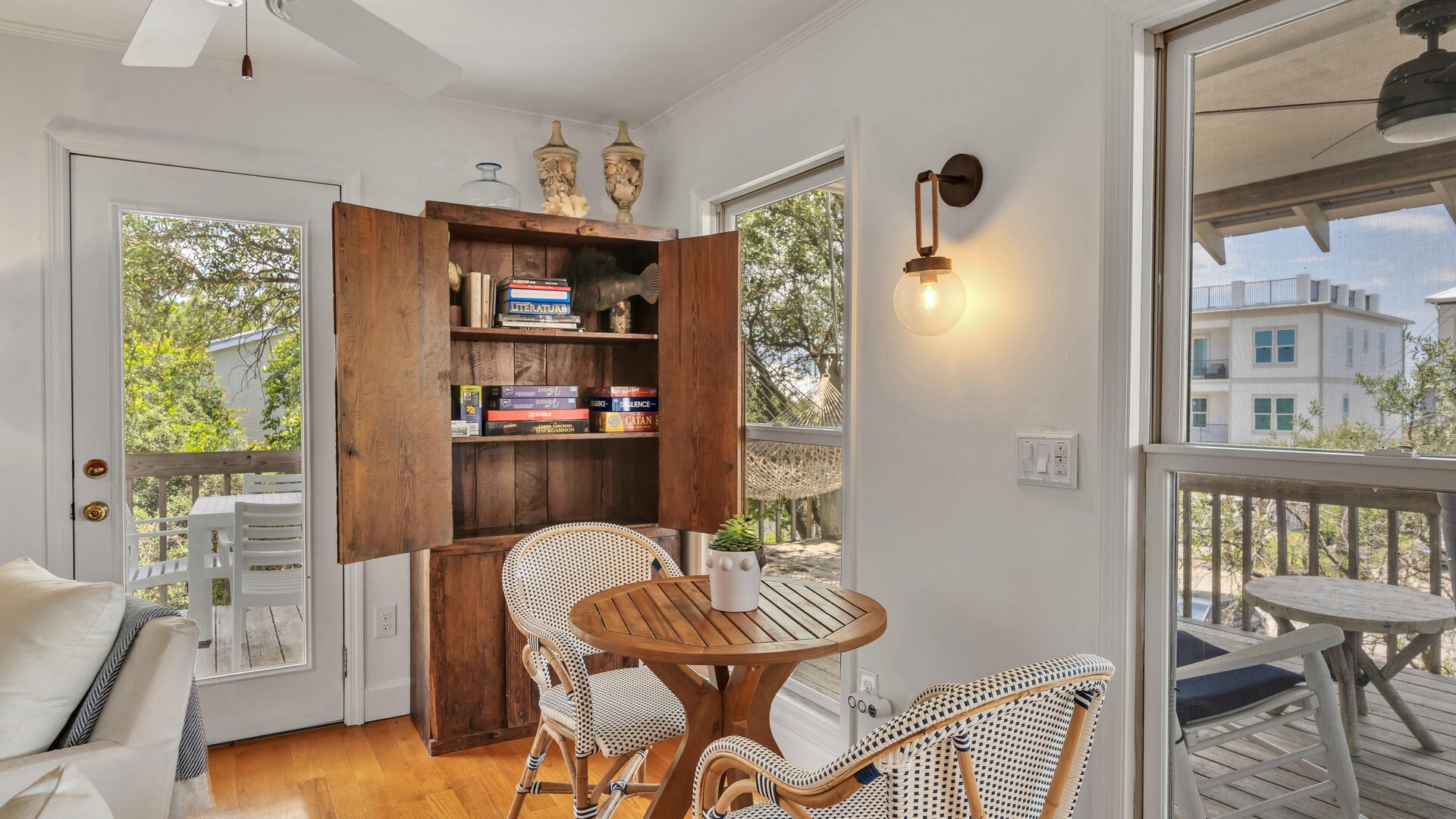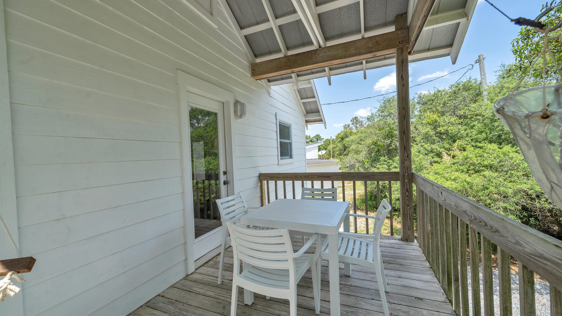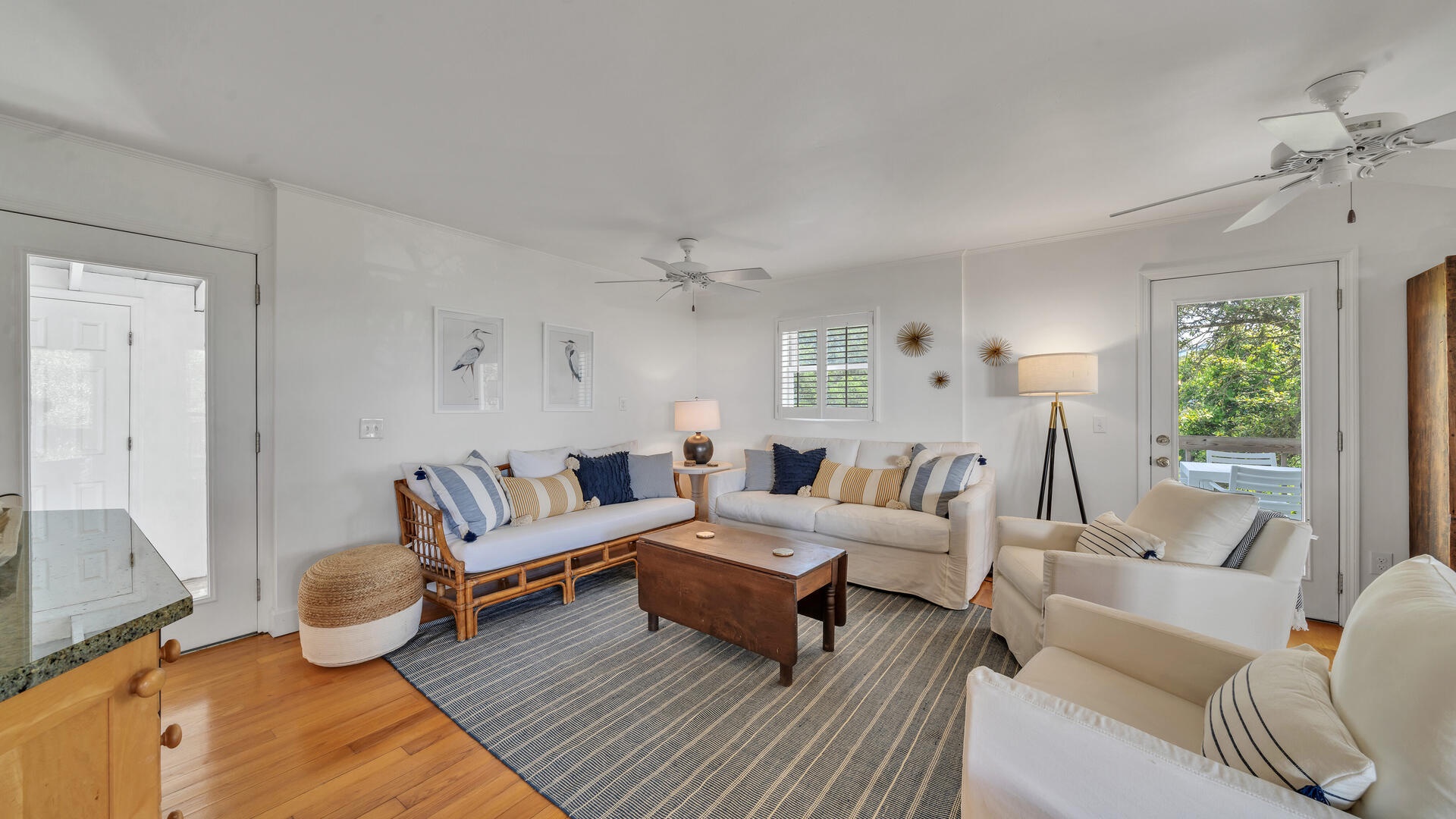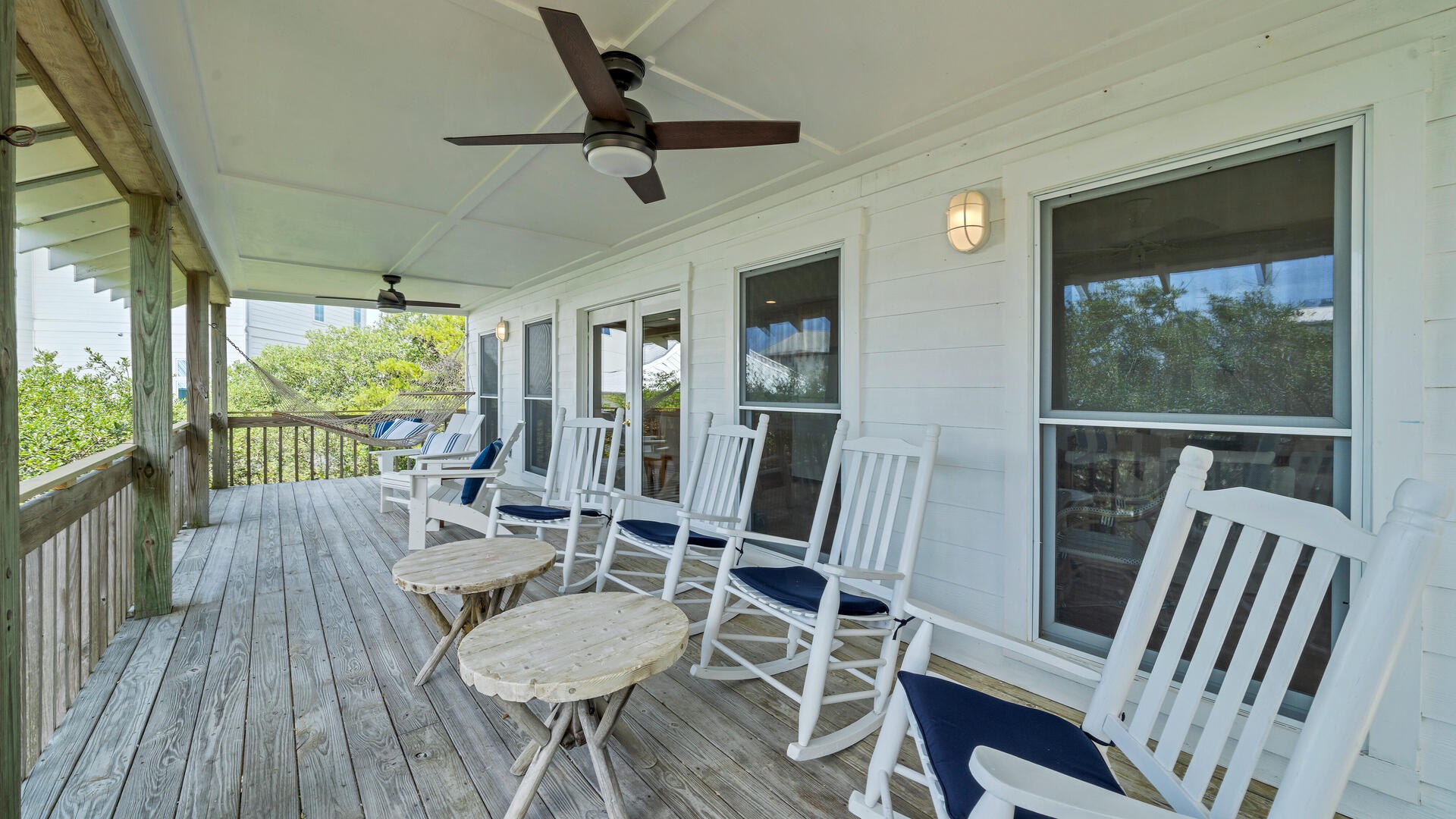 On the main level, a wrap-around covered deck offers up two hammocks, multiple rocking chairs and sitting chairs, as well as an outdoor dining space! With the shade of the surrounding live oak trees, and the coastal breezes, you'll find yourself falling in love with the outdoor spaces!