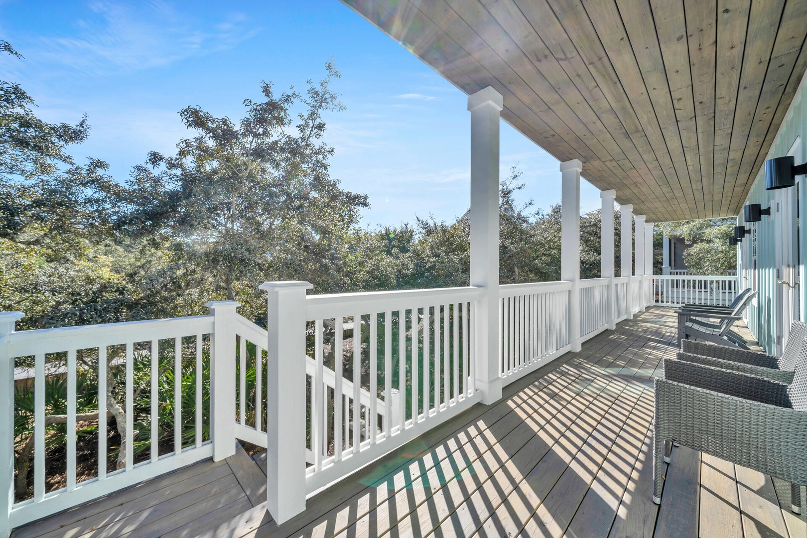 Relax in the shade or follow the back porch steps to pool and beach!