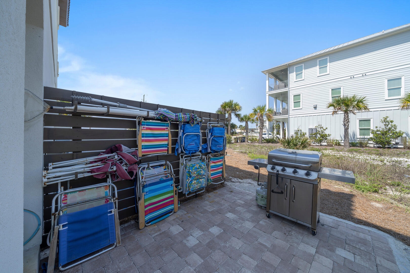 Beach gear wall and grilling area!