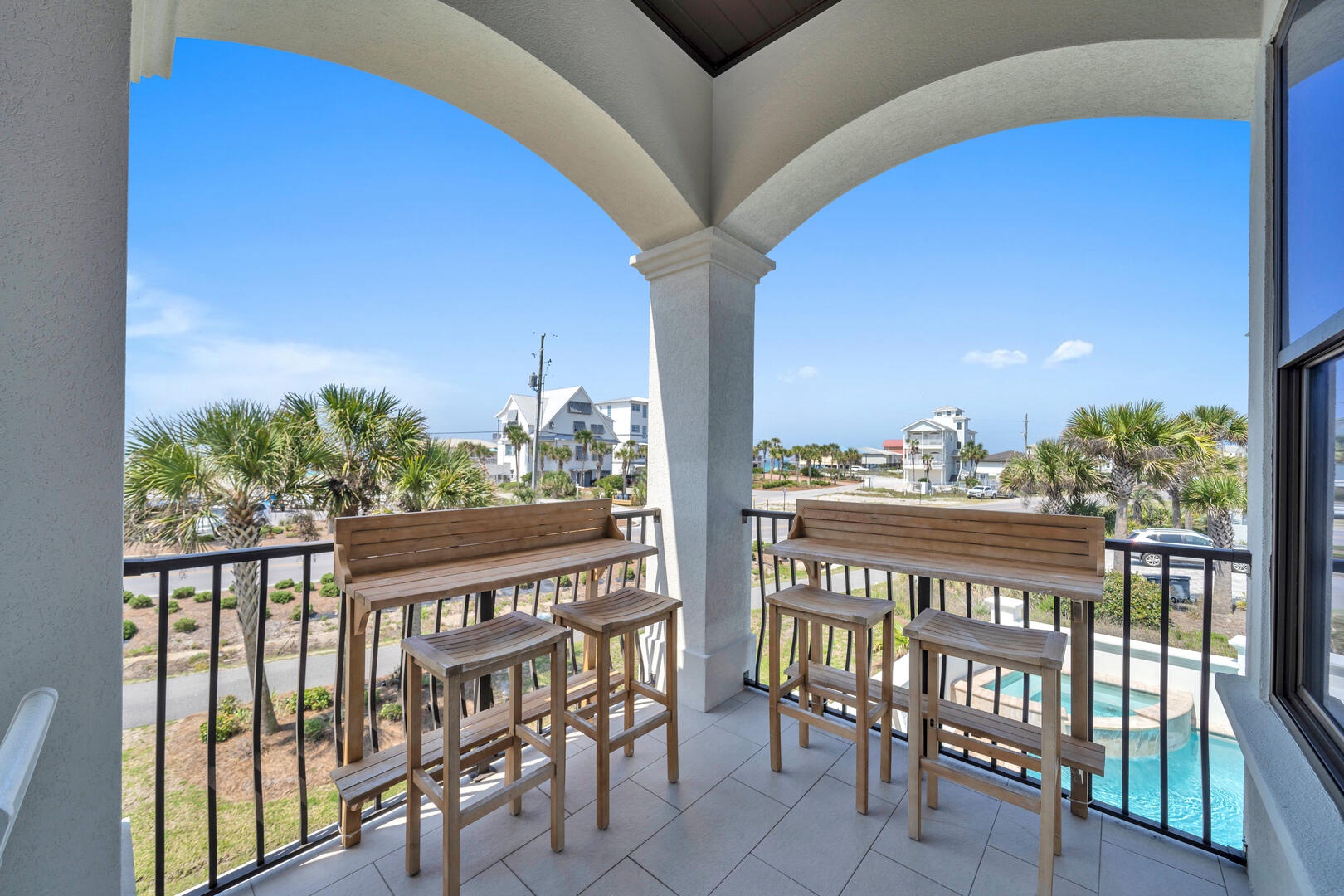 Look out to the beach or down to the pool from your high-top perch!