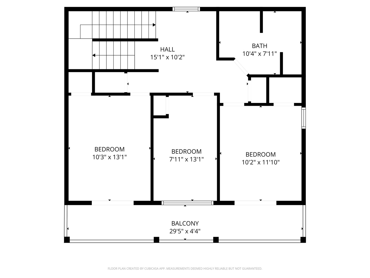 2nd Floor Layout with full bathroom, 3 bedrooms, and balcony (reference only, scale is not exact).