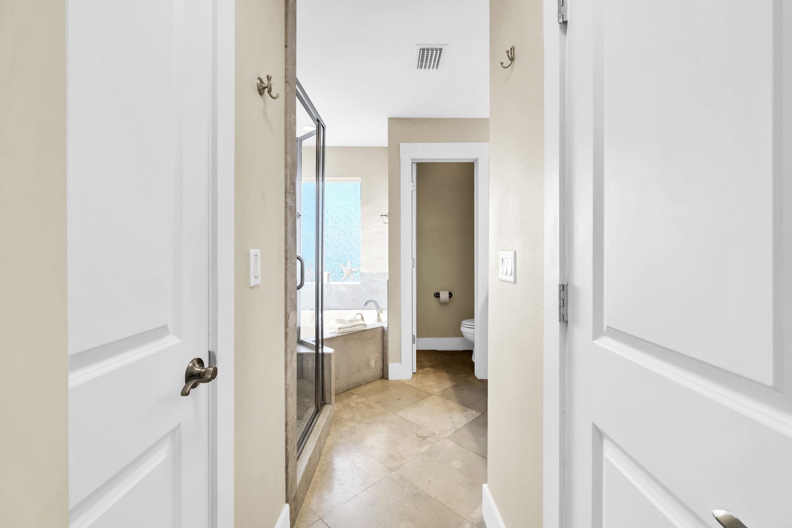 Relax in your spacious master suite where soft coastal colors and natural light create a serene atmosphere, while your private balcony beckons.