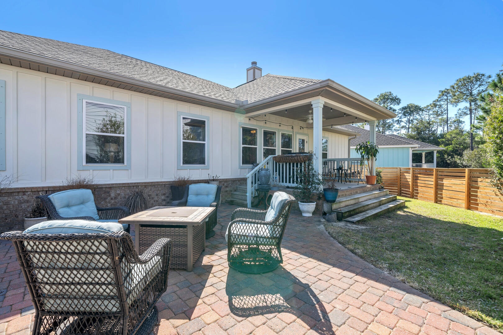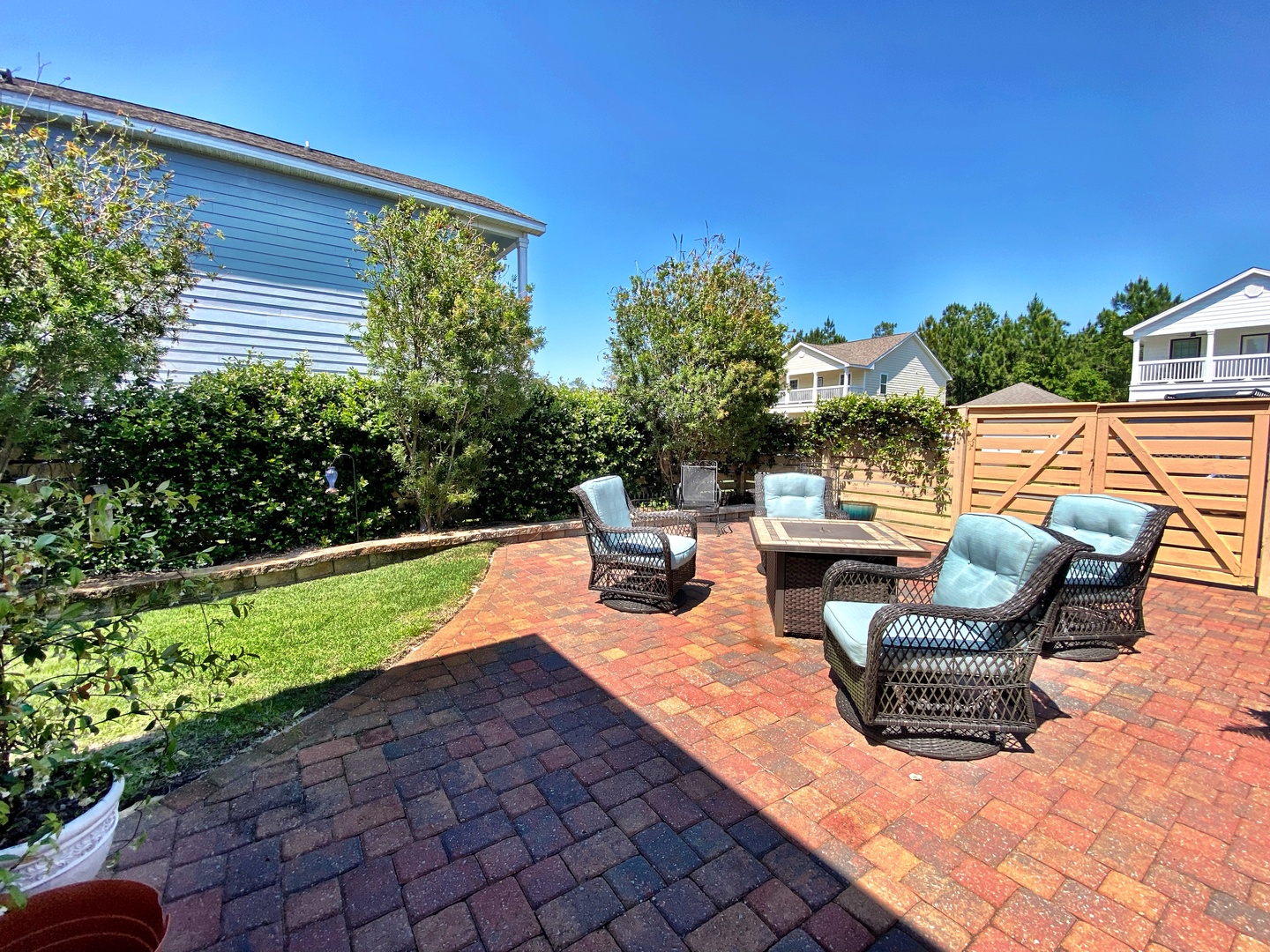 - Patio with fire pit and additional seating