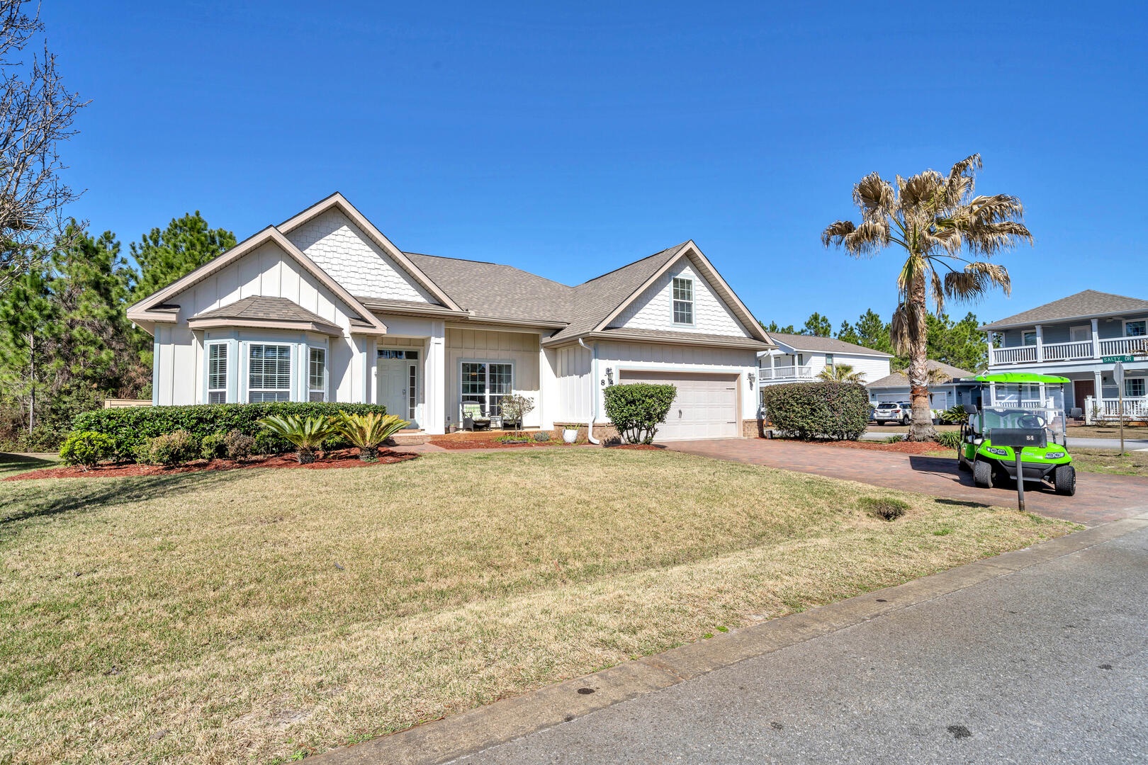 If you're looking for a place with a fun pool, you cannot beat Cypress Breeze! Walk or bike to the amazing neighborhood pool - at about 13,000 square feet, with multiple waterfalls and grottos, it's one of the largest community pools in all of Northwest Florida! Enjoy your mornings at the beach and come back to splash in the amazing resort-style pool! You'll also find fun shopping and dining at Gulf Place - see pics for more info. We also include local recommendations in our guest guide on-site! Other fun features of this beach home include a full-size washer/dryer, fast WiFi, and a grilling patio and fire pit in the back yard, 6-passenger golf cart, 2 beach cruiser bikes and more!