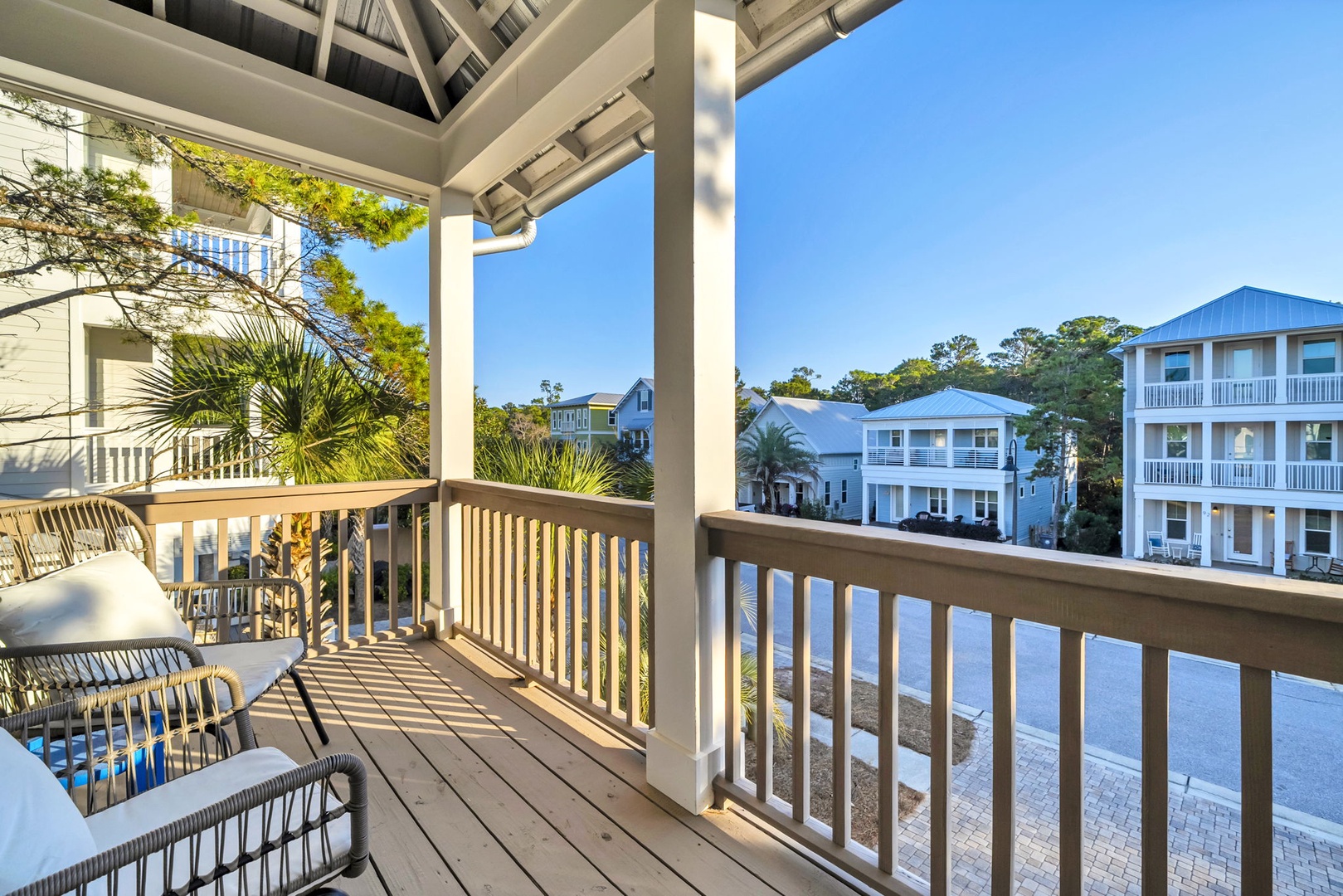 Step onto your private balcony and soak in the coastal neighborhood views while sipping morning coffee in your comfy outdoor chairs.