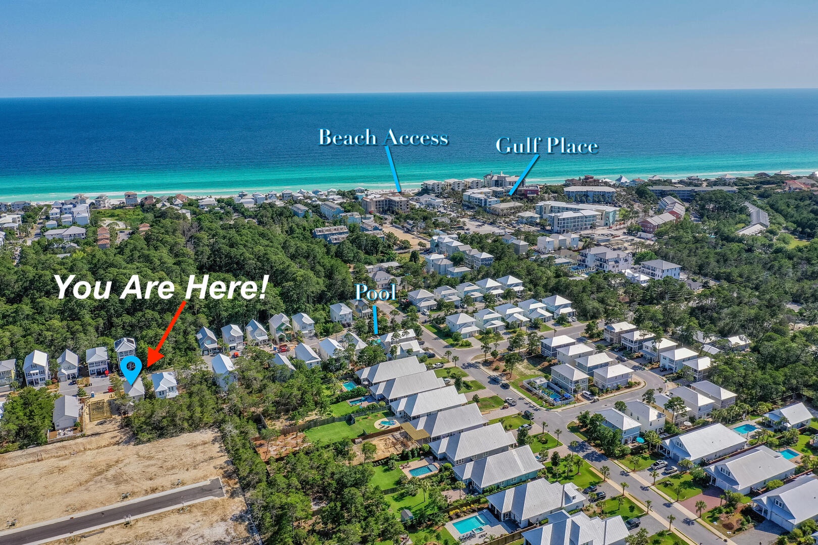 The beach is only a 10-minute walk, or quick bike ride (if renting/bringing bikes)! At the beach access, you'll find a good size parking lot, restrooms, outdoor showers, and plenty of places to grab a snack or drink while you're down there. The sugar-white sands and emerald waters of the Gulf Coast cannot be beat!